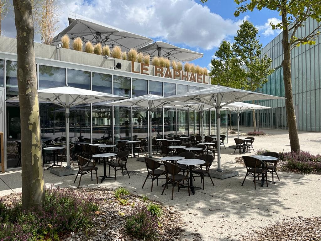 Warme loungesfeer met groot schaduwrijk terras. Verfijnde lokale keuken.