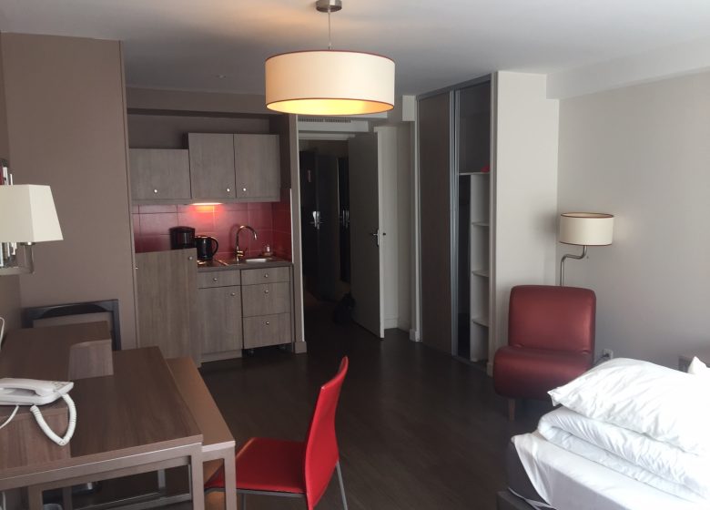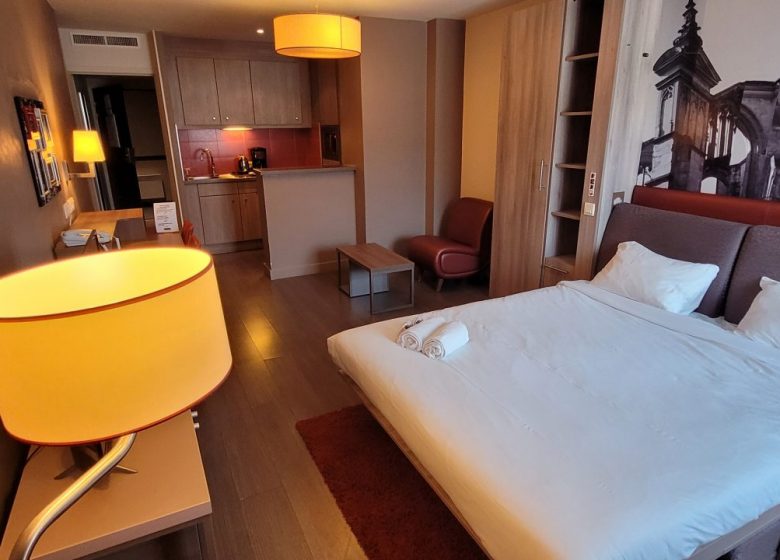 De residentie beschikt over 114 zeer comfortabele appartementen, van studio's tot 2-kamerappartementen voor 4 personen. Faciliteiten op het terrein zijn onder andere een ontbijtservice, een coworkingruimte en beveiligde parkeergelegenheid buiten.